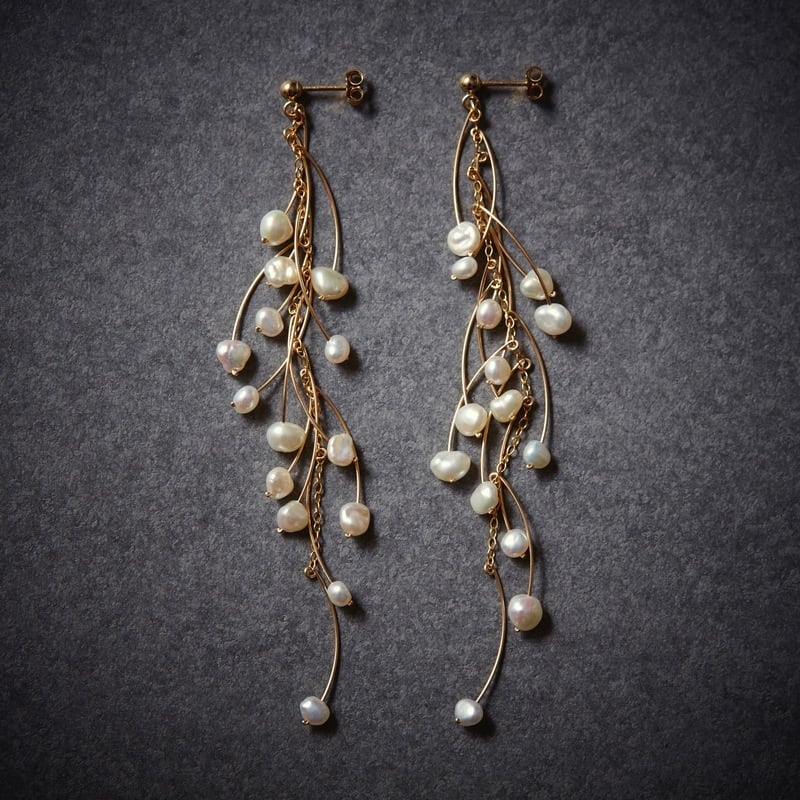 軽やかに揺れるデザインが耳元を華やかに演出し、淡水パールの繊細な輝きが上品さを加えます。